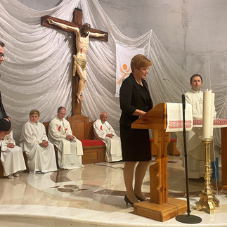Zbrani smo tukaj, da v krogu najdražjih, bližnjih, prijateljev in cerkvenega občestva izrečemo skupaj veliko zahvalo za prehojeno pot zakona, za navzočnost Gospoda na naših poteh, ko nas varuje in daje moč v zdravju in bolezni, v sreči in nesreči in se veseli naše zvestobe in ljubezni ter vse skupaj obilno blagoslavlja. Hvala ti Gospod.
