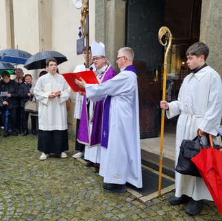 Zbrali smo se v Marijini cerkvi in v molitvi po celjskih ulicah poromali do stolnice sv. Danijela, kjer nas je prijazno sprejel celjski škof msgr. dr. Maksimiljan Matjaž in nas skozi svetoletna vrata popeljal v stolnico.